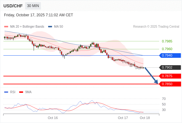 在 0.7940 之下,看跌,目标价位为 0.7875 ,然后为 0.7850 。