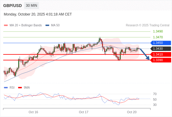 在 1.3450 之下,看跌,目标价位为 1.3410 ,然后为 1.3390 。