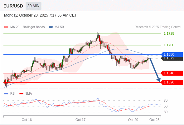 在 1.1680 之下,看跌,目标价位为 1.1640 ,然后为 1.1620 。