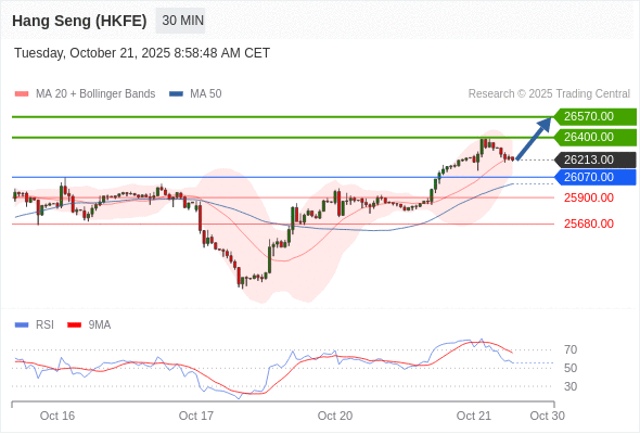 在 26070.00 之上,看涨,目标价位为 26400.00 ,然后为 26570.00 。