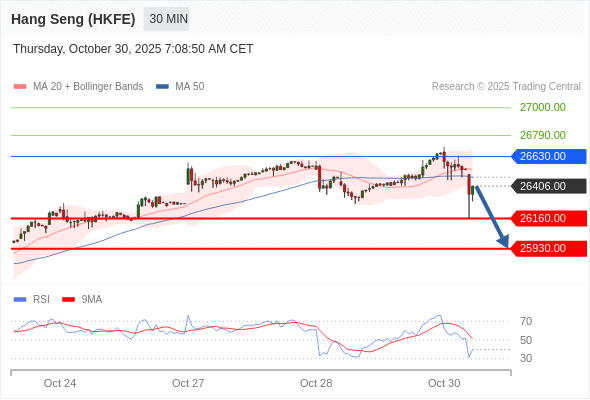 交易策略: 在 26630.00 之下,看跌,目标价位为 26160.00 ,然后为 25930.00 。