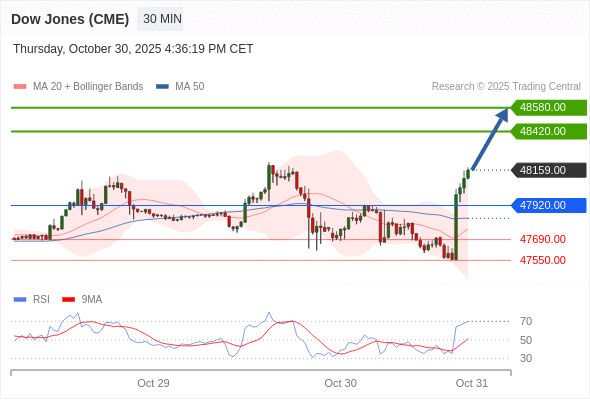 交易策略: 在 47920.00 之上,看涨,目标价位为 48420.00 ,然后为 48580.00 。