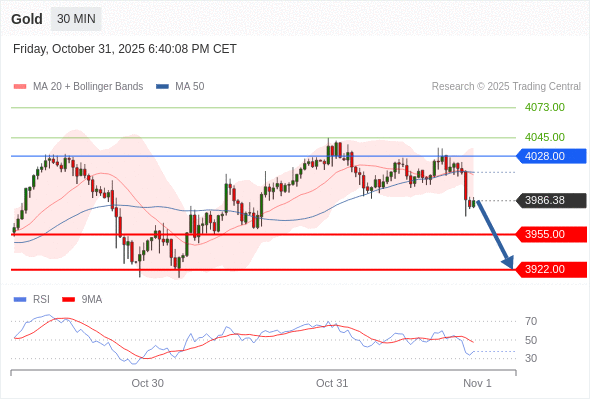 在 4028.00 之下,看跌,目标价位为 3955.00 ,然后为 3922.00 。