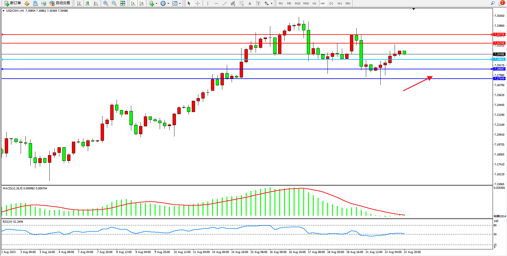备选策略:7.29825下方看跌,目标7.28687  7.27549