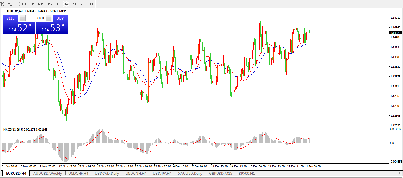 交易策略:在1.1400之上,看涨,目标价位为 1.1485 ,然后为1 .1500