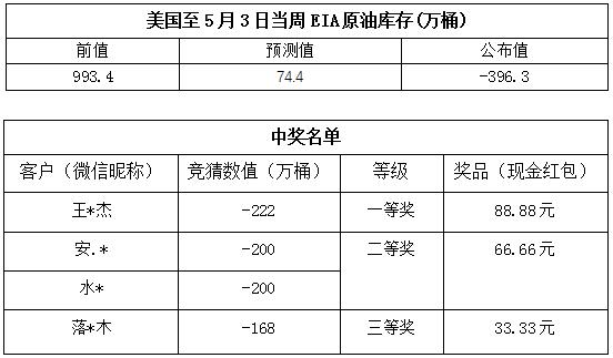 2019年5月第1期“EIA大竞猜”活动中奖公告
